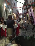 - En öl utanför kyrkan Igreja da Graca med utsikt mot Castelo de S. Jorge