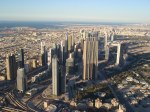 - Flyger hemåt över Dubai, bland annat ser man Burj Khalifa sträcka sig mot skyn