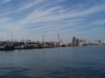 - Traditionella båtar med det spektakulära Dubai i fjärran