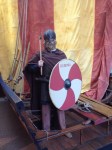 - En av de två guiderna, båda i vikingakläder
