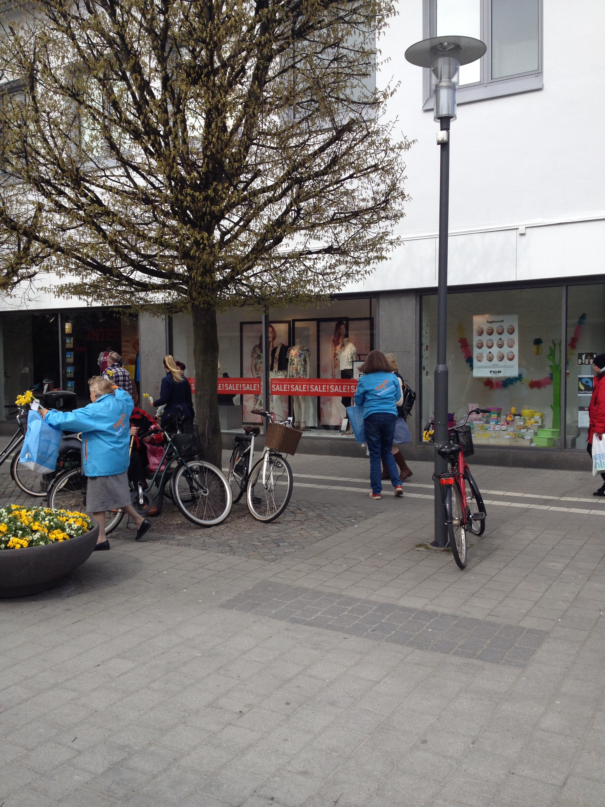 Helny och Ina i full gång med att dela ut påskliljor.