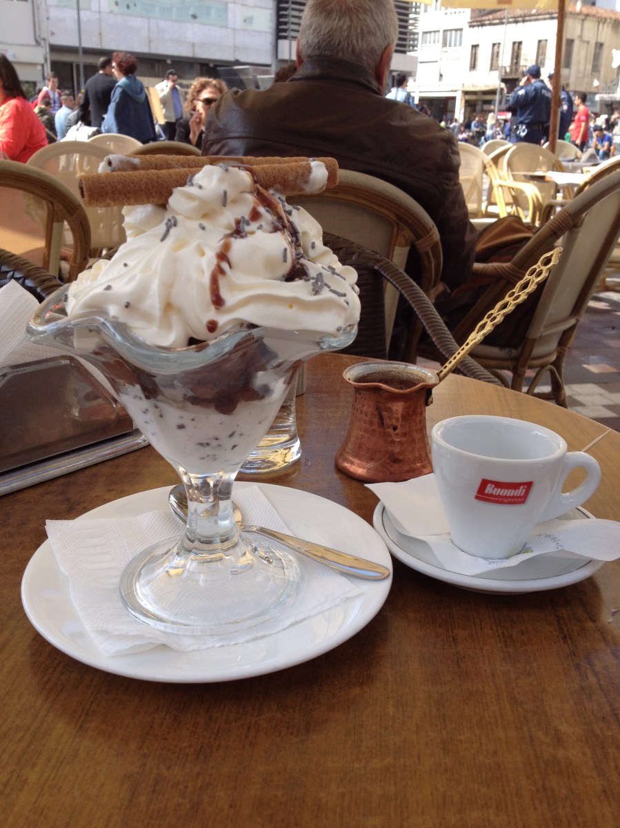En stund i solen med glass och grekiskt kaffe