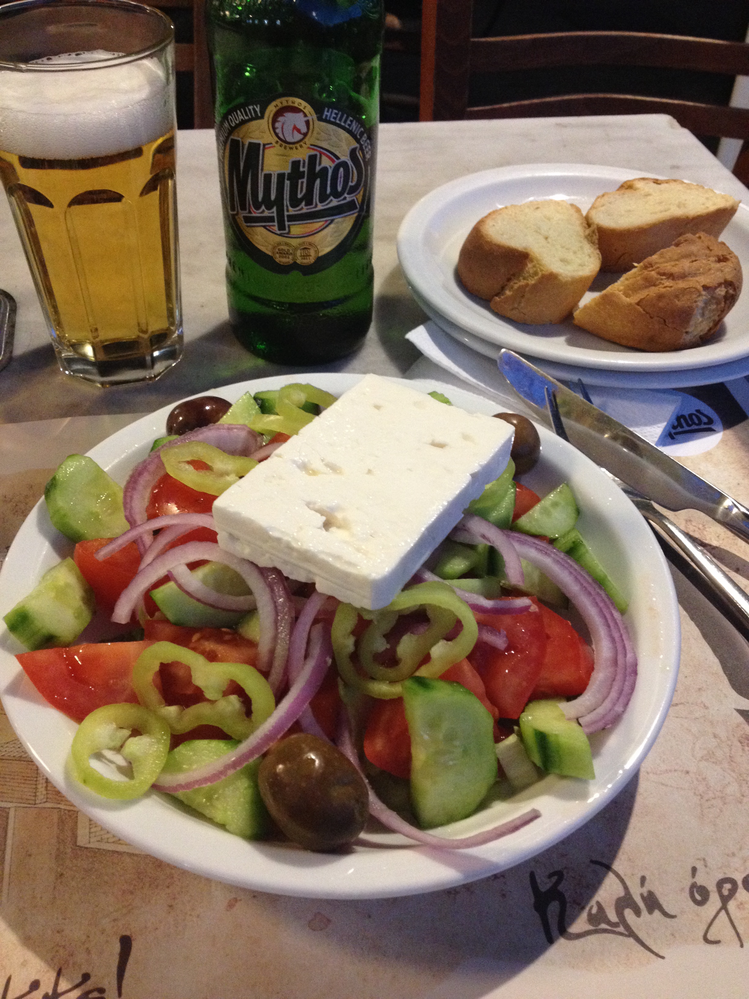 Sista kvällens middag inleddes med denna variant av grekisk sallad