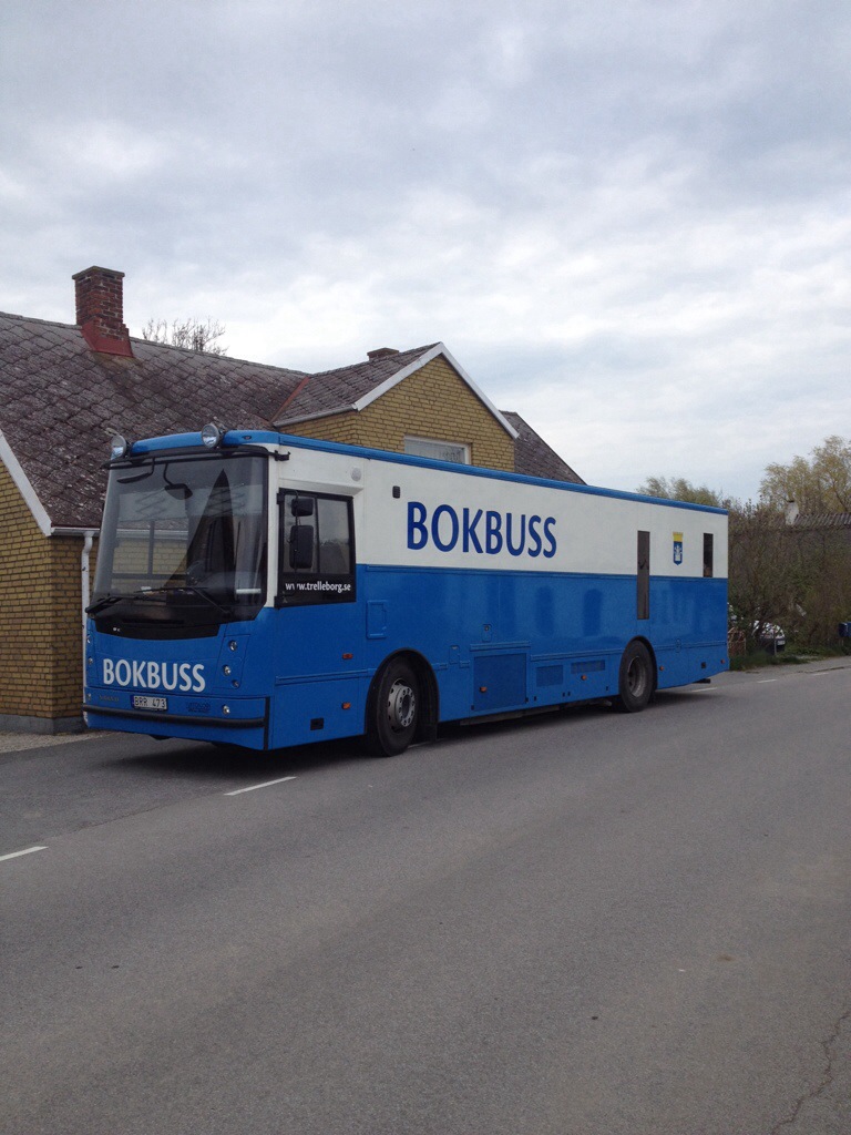 För tredje gången har jag åkt med bokbussen på en ordinarie tur runt i kommunen. Denna gång blev det en tur österut till Smyge-Simremarken-Lilla Beddinge-Beddingestrand-Smyge.