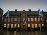 - Rådhuset i Trelleborg med stadsvapnet vajande i vinden