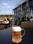 - En kall öl är aldrig fel. Denna intas på promenaden vid floden. I bakgrunden syns Kungliga palatset.