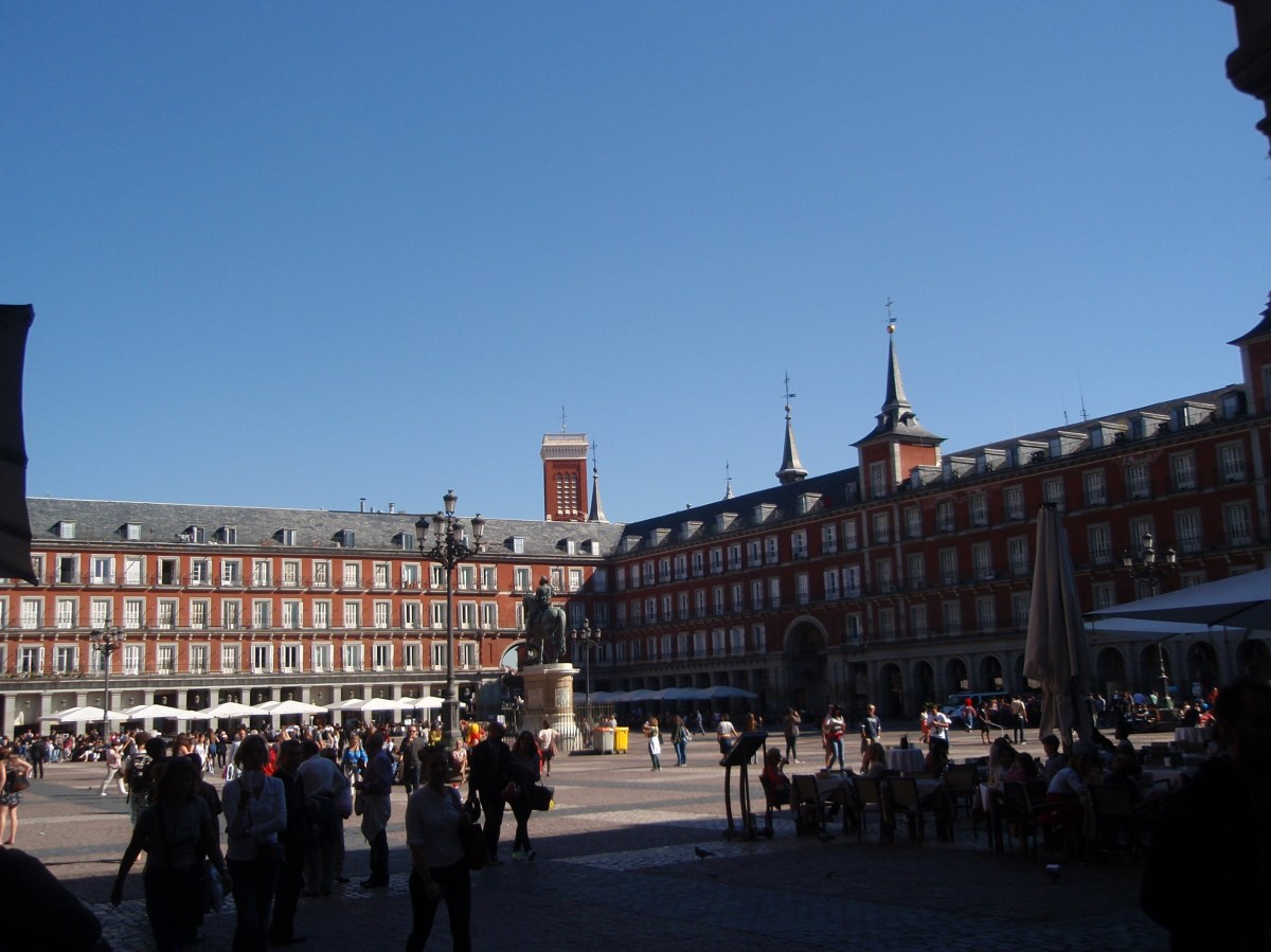 Madrid ← Föregående Nästa → Tack vare torgets storlek inser man inte hur många uteserveringar och folk här egentligen är