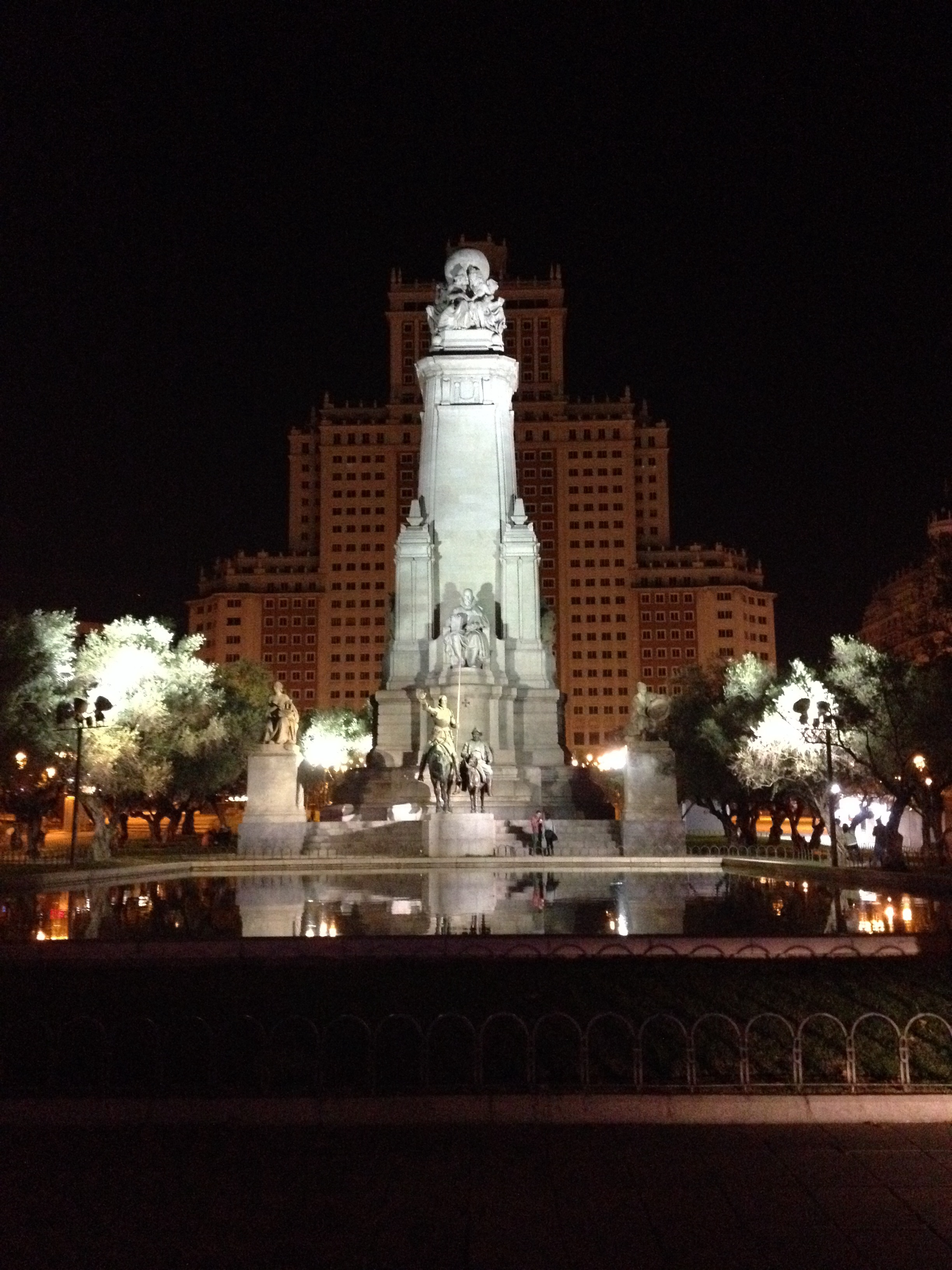 Monumentet över Cervantes nattetid