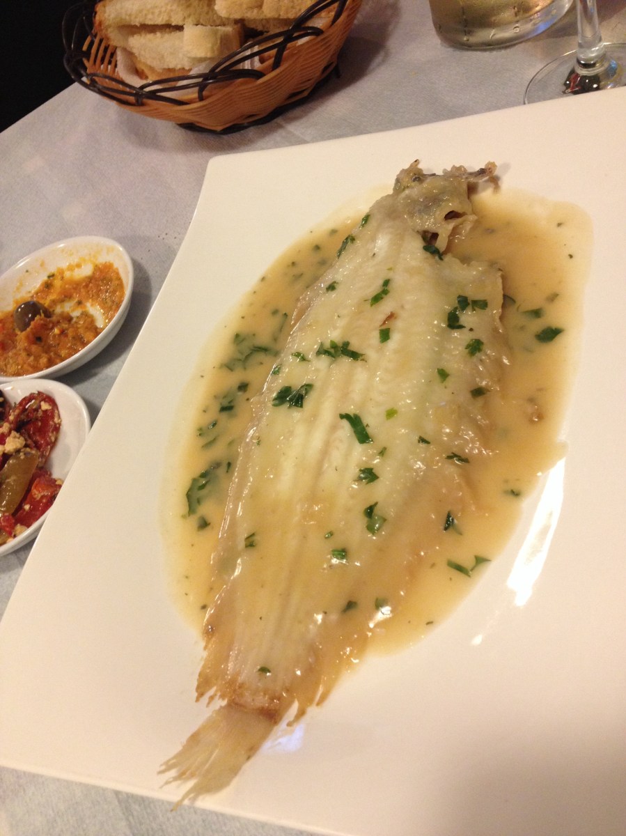Sjötunga tillagad i en vinsås blev andra kvällens mat