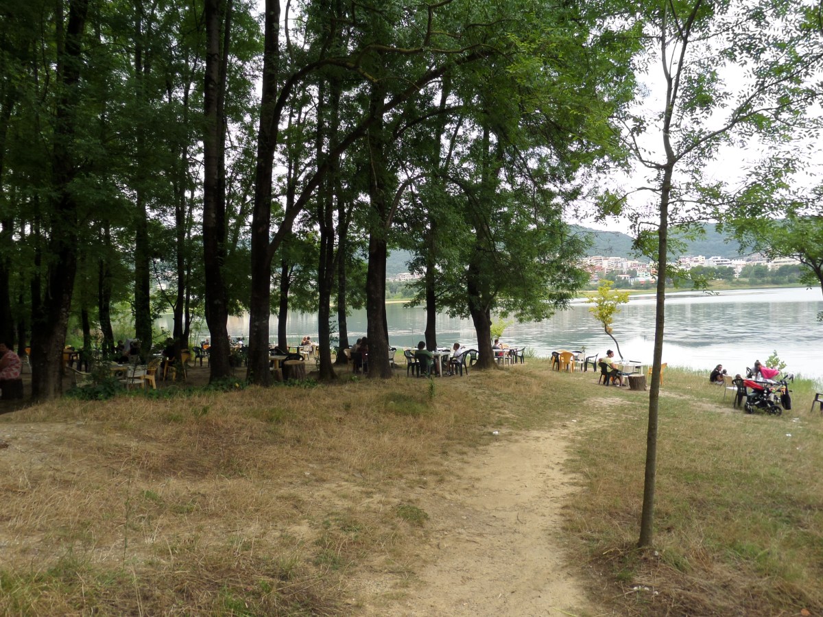 Vid sjön fanns möjlighet att pausa och ta en kopp kaffe