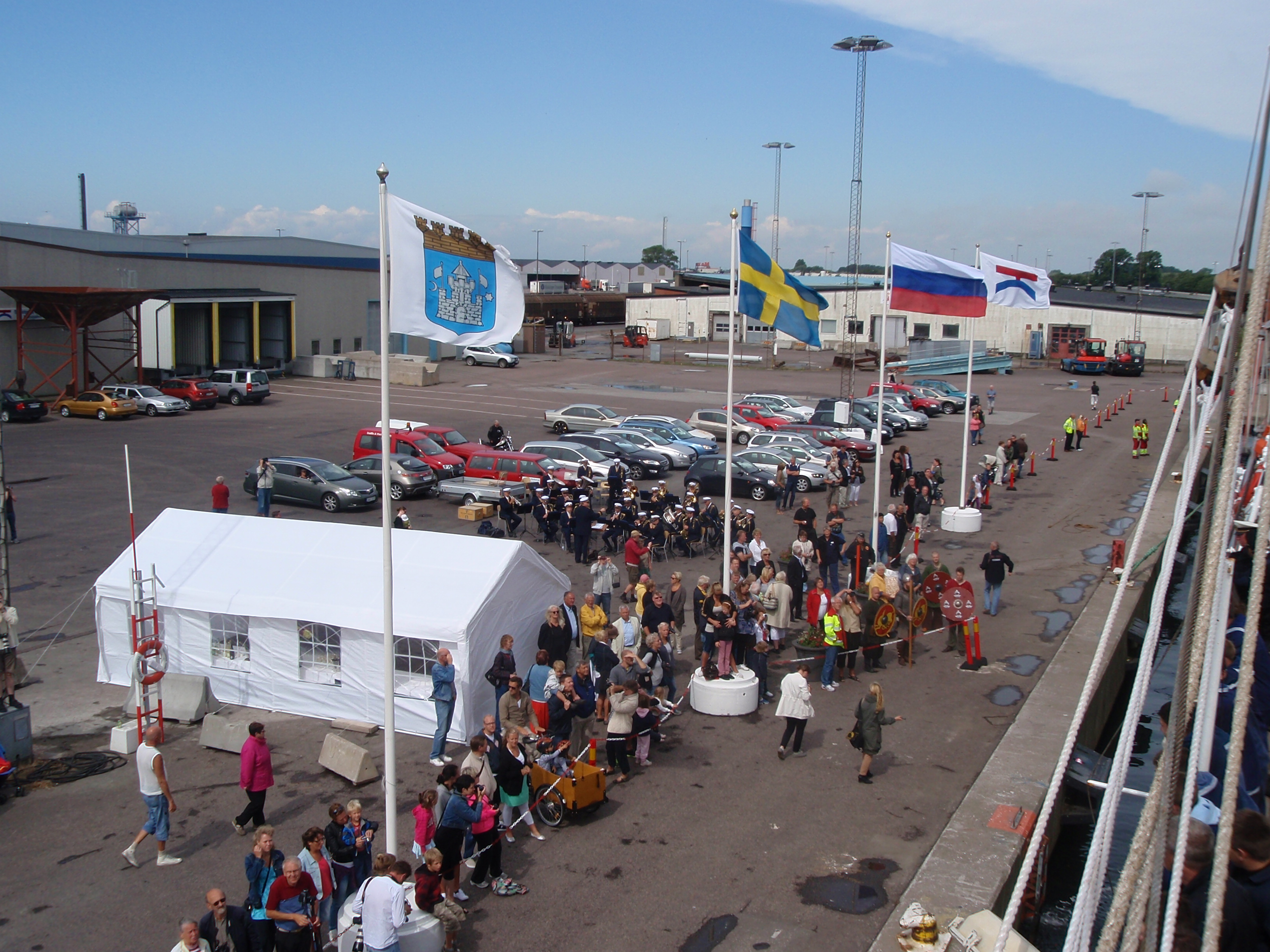 Ett värdigt välkomnande mottagande av STS SEDOV till Trelleborg