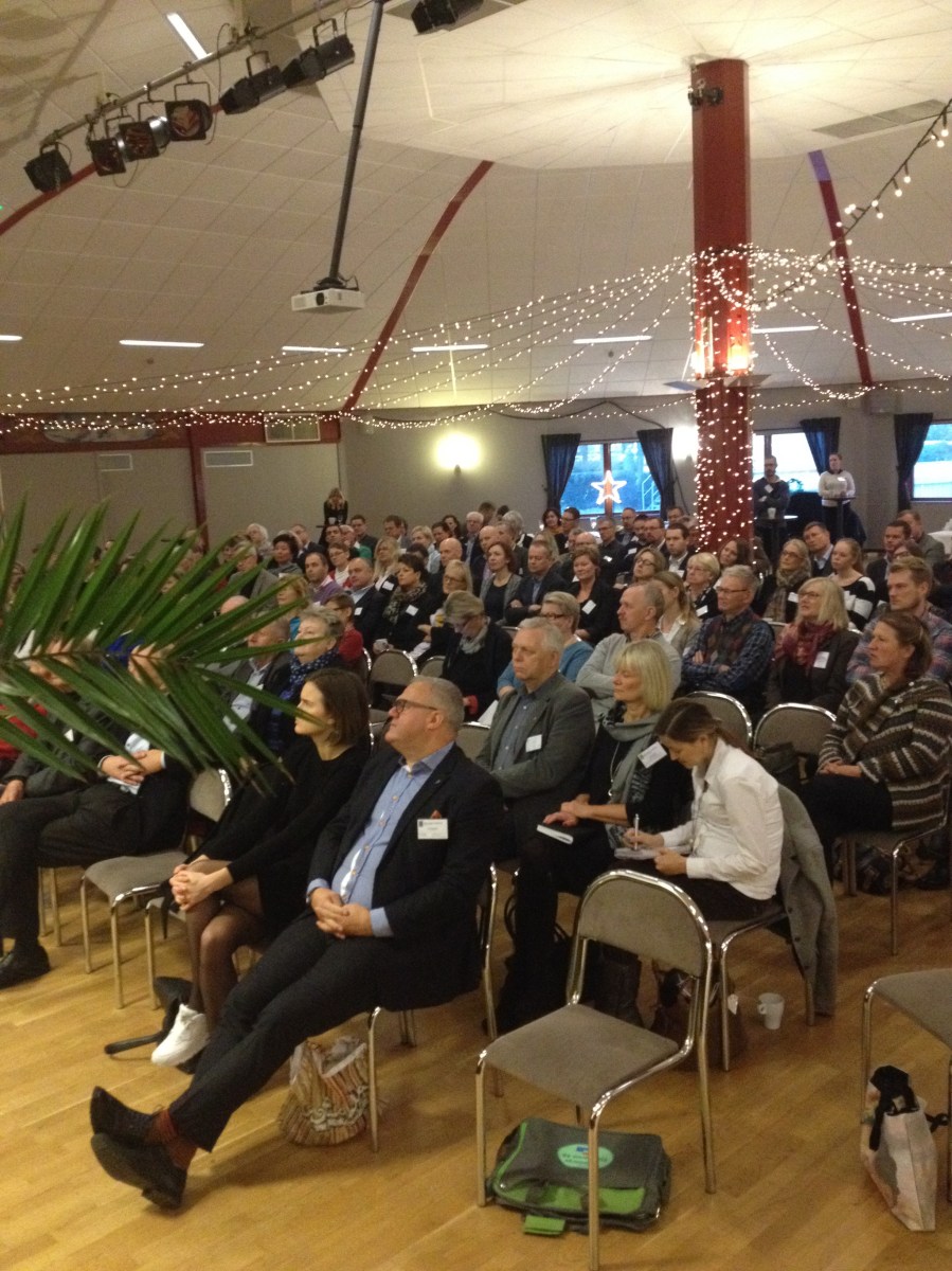 Publiken lyssnar uppmärksamt på Mona Sahlin