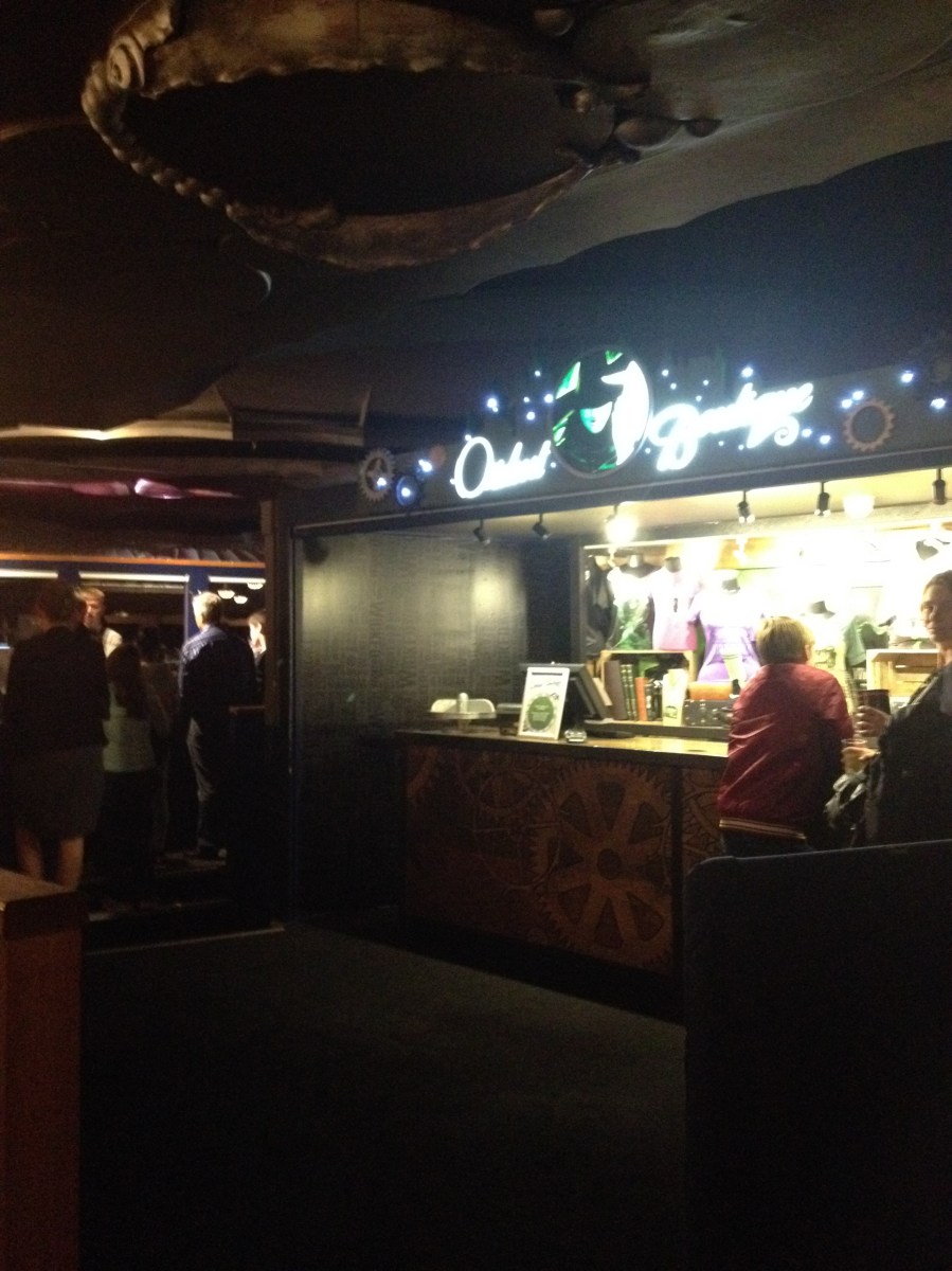 SAM_1507f ← Föregående Nästa → I bakgrunden baren med lite olika häxdrycker. Gott om varor att köpa för att minnas kvällen fanns också.