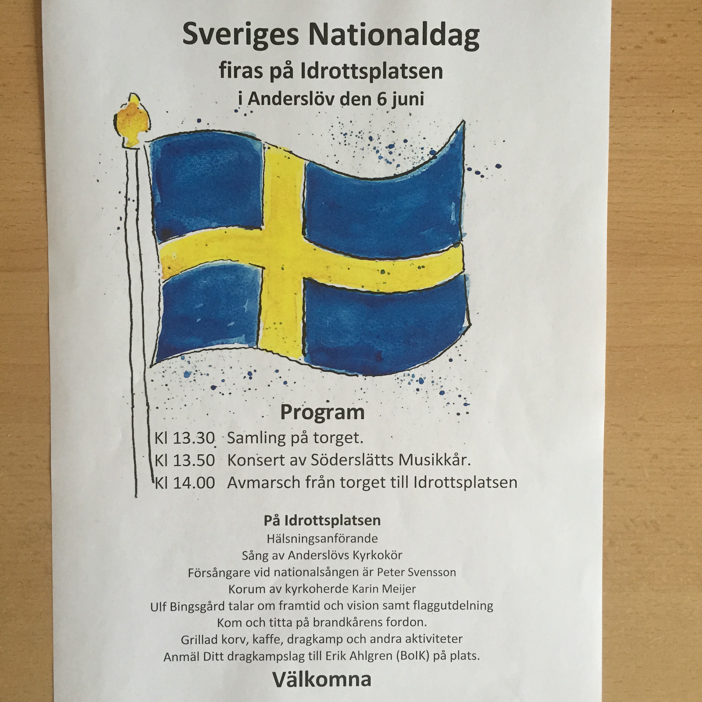 Programmet för Nationaldagsfirandet 2015 i Anderslöv