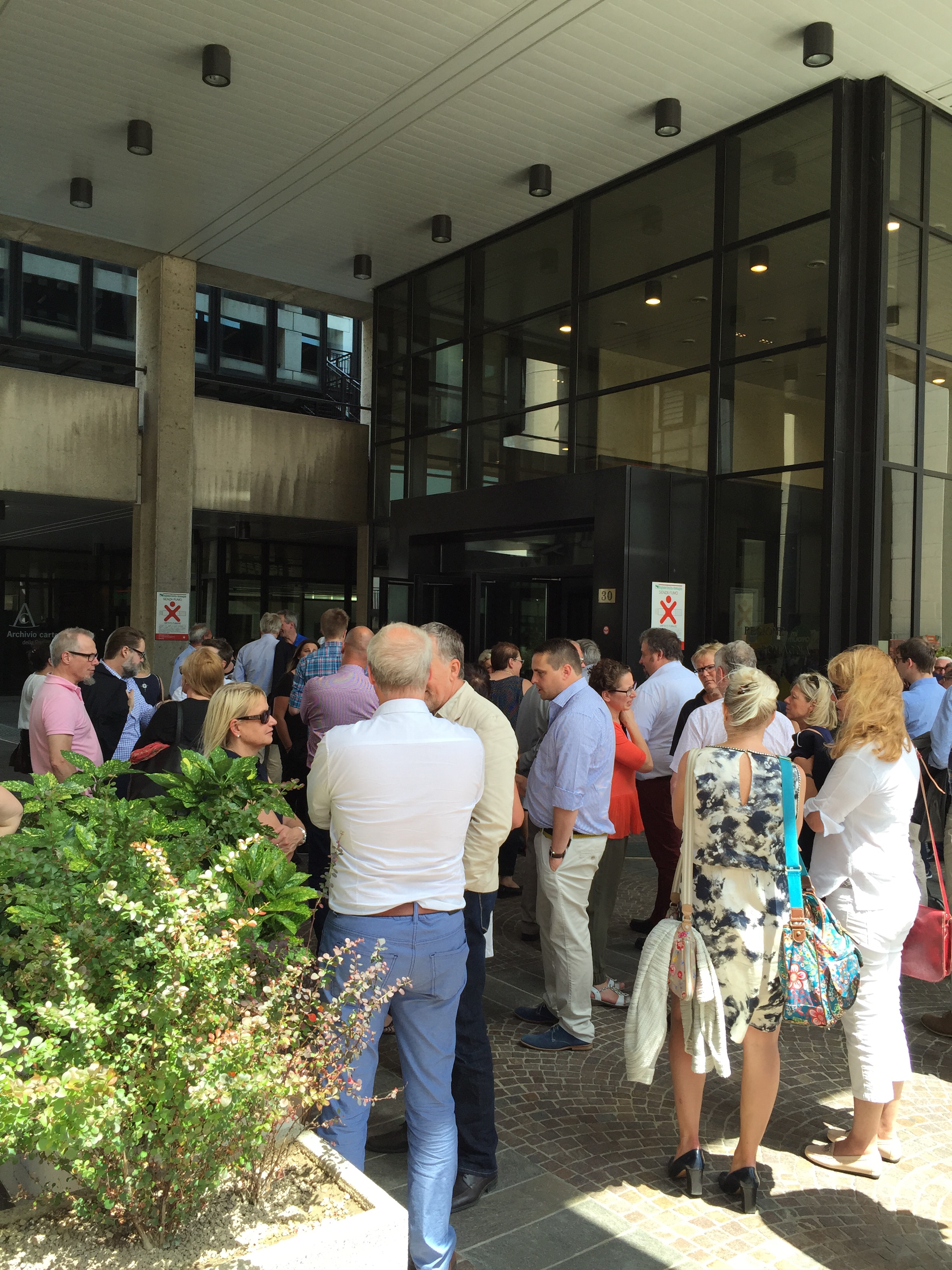 Hela gänget samlat utanför regionkontoret i Bologna