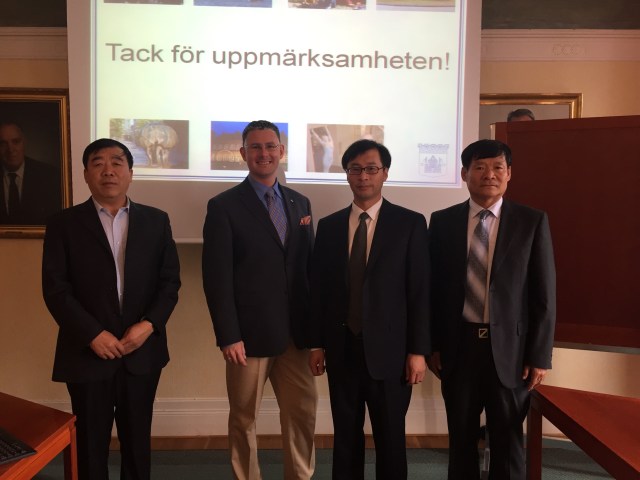 Igår hade jag glädjen att få hälsa en delegation från staden Dengta i Liaoningprovinsen välkommen till Trelleborg. Dengta är en stad med drygt 500 000 invånare i nordöstra Kina. Delegationen bestod av vice borgmästare Wang Fuyuan, Yang Weixing från TongErPu China Merchants New Town Management Committee och Han Guohui från Dengta City Forestry Bureau.