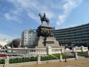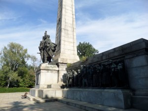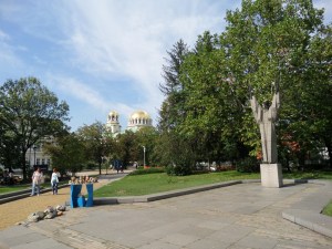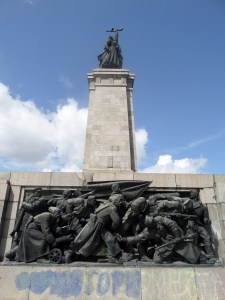 En monumental monumentstil som jag på något sätt gillar finns i östra Europa. Den är så klart väldigt påverkad av forna Sovjetunionen, antingen direkt eller indirekt. De verkligen sticker ut eller snarare upp i stadsbilden. Storslagen yta framför och sedan en rejäl staty oftast med basen smyckad av olika typer av reliefer. Två sådana mastodonter finns, en i Borisova Gradina Park och en mitt emot universitetet, helt enkelt kallad Sovjetiska arméns monument. Ett helt annat monument som sticker upp tydligt mot skyn är statyn över Sofia.