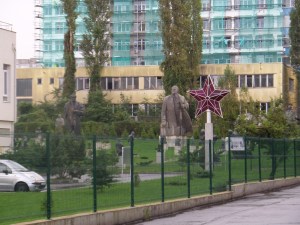 En av de saker som jag tycker hör till mina sätt att upptäcka en stad är att jag går. Det ska mycket till för att jag ska ta buss eller spårvagn och nästan helt omöjligt att tänka mig en taxi. Hellre blåsor på fötterna och haltande gång än en taxi. Via turistboken om Sofia hade jag läst mig till att det fanns en samling ”Memories of a past time”, en samling kommunistiska symboler och statyer. Inte helt i centrum men ändå, ansåg jag, på gångavstånd. Problemet var väl att det nog bara är jag som anser att man ska gå dit från centrum. Riktiga gångvägar saknades och dessutom lyckades vädret ändra sig rätt rejält. Från en skön solig dag så lyckades jag pricka in inte bara en utan två störtskurar när jag nästan var hela vägen framme. Väl framme, hoppandes mellan vattenpölarna och vattnet chippande i skorna kunde jag inte hitta ingången. Jag fick nöja mig med att se Lenin och de röda stjärnorna genom gallret.