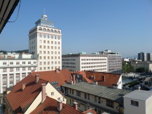 - Skyskrapan i Ljubljana sedd från mitt hotellrum