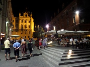 I de centrala delarna av Ljubljana, vid floden, så var det fullt av uteserveringar. Mycket trevligt och ett bra utbud. Inte så livligt under de heta dagarna, men fullt med folk kvällstid.