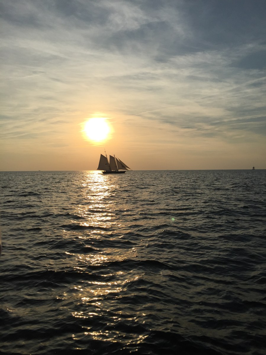 Skepp i solnedgång