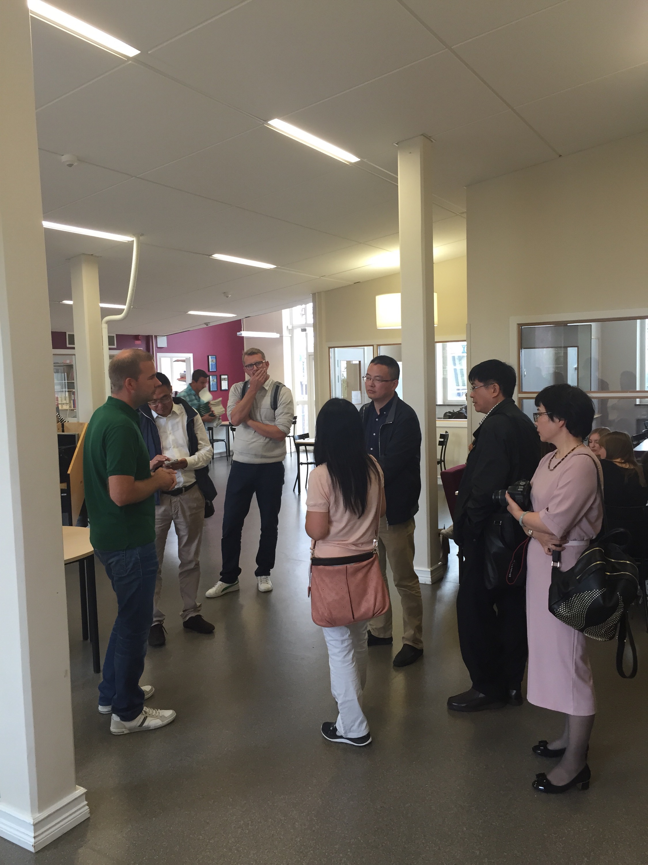 Inledningsvis fick besökarna en presentation av Trelleborgs kommun, bildningsförvaltningen och Söderslättsgymnasiet. Det blev stort fokus på it-verktyg och hur vi arbetar med it i skolan. Detta då både riktat till lärarna och till eleverna. I samtalet kom både likheter och skillnader fram mellan länderna och systemen. Vi har en högre lärartäthet. Hos oss är utbildningar med samhällsvetenskaplig och ekonomisk inriktning populära. I Kina är det de naturvetenskapliga utbildningarna som ligger i topp. Det är också olika tillgänglighet till internet i våra båda länder, vilket uppmärksammades vid några tillfällen under besöket.