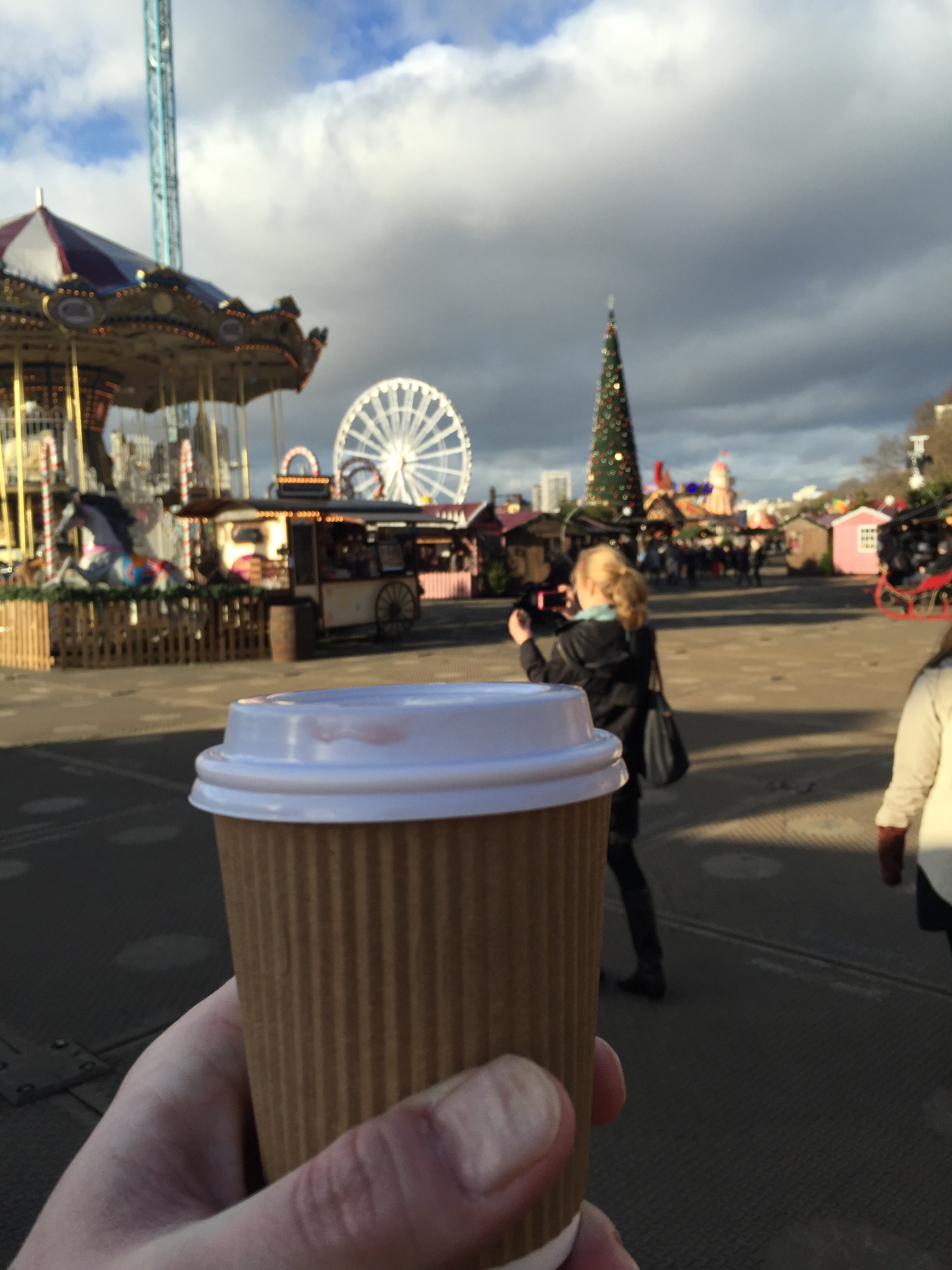 En mugg mulled wine på Winter Wonderland i Hyde Park