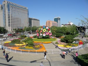 - Ett stort blomsterarrangemang på Himmelska fridens torg