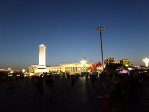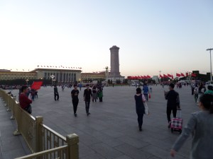 Kommer man till Beijing måste man besöka Himmelska fridens torg. Platsen i sig är ju smått historisk, men även bara upplevelsen att stå på detta stora torg, världens största torg. Det är så stort att man undrar lite över hur stort kan ett torg vara innan det ska kallas något annat. Många kvadratmeter, närmare bestämt 220 000 kvadratmeter, finns att vandra på, men ändå var det fullt och trångt på sina ställen.