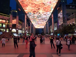 Mitt i allt, så fanns ett köpcentrum, The Place. Fast inte som ett traditionellt köpcentrum, för några omslutande väggar fanns inte. Mellan två byggnader som tydligt hänger samman finns en stor TV-skärm till tak som gav en känsla av helhet. Torget var ett utrymme som användes av alla. Även om det var på kvällen så lekte barn där och området levde.