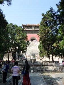 Nästa stopp på vår resa var Minggravarna. Minggravarna ligger 45 kilometer norr om Beijing. Det är ett gravfält bestående av tretton kejsares gravar. En av gravarna är öppen för besökare, kejsare Wanlis grav. Efter att ha sett hur vackra tempel som funnits och många andra vackra byggnader från historiska Kina kändes det spännande att få besöka en grav. Jag såg framför mig stora rikedomar och vackert smyckade gravkamrar.