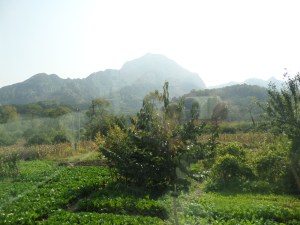 Vädret var vackert och landskapet varierande. Kul att få se landsbygden och bebyggelse annorlunda än den inne i Beijing. Vi kom fram vid lunchtid och det var gott att få lite mat i magen. Den tidiga morgonen gjorde ju att frukosten fick hoppas över. Olika rätter dukades upp framför oss och vi lät oss väl smaka.