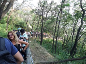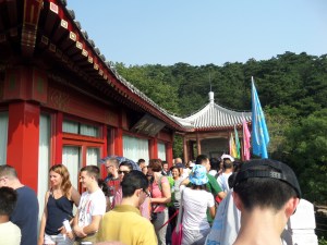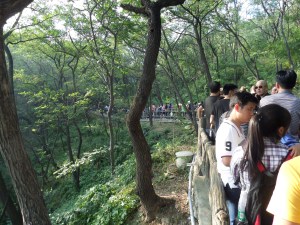Hem skulle vi också. Jag trodde jag tog i väl tidsmässigt när jag gick till linbanan en kvart före utsatt återsamlingstid. Men kön ringlade lång, mycket lång. Tursamt var att på väg till platsen sist i kön passade jag några i vårt gäng och bad dem hålla bussen. Fast, jag var inte sist i gänget. Kön fylldes på hela tiden och nästan hela vårt bussgäng hade varit tidsoptimister. Men, långt om länge kom vi ner och bussen hade så klart väntat på oss. Nu kunde färden hem till Beijing påbörjas.