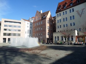 Ringmuren var ett tydligt exempel på delar av det gamla historiska Nürnberg. Strax innanför fanns gamla och nya hus på något sätt i en salig blandning. Några gamla små gathus där butiker fanns. Några steg längre fram möts man av en ny modern konsthall. Det är den här typen av blandning i staden som jag gillar. När stora hus möter små, där nyt och gammal ligger sida vid sida.