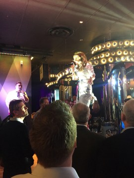 När väl man kommit in från kylan och hängt in rocken får man sin servitör eller servitris för kvällen. Kontaktsamtalet blir kort för snart stod hon på scen, eller snarare på baren och sjöng för fult. Kvällens underhållning hade börjat.