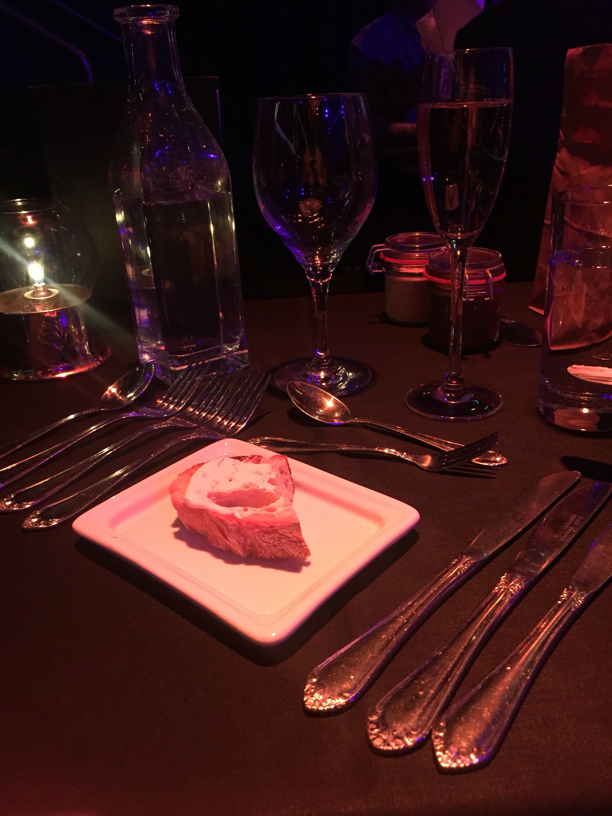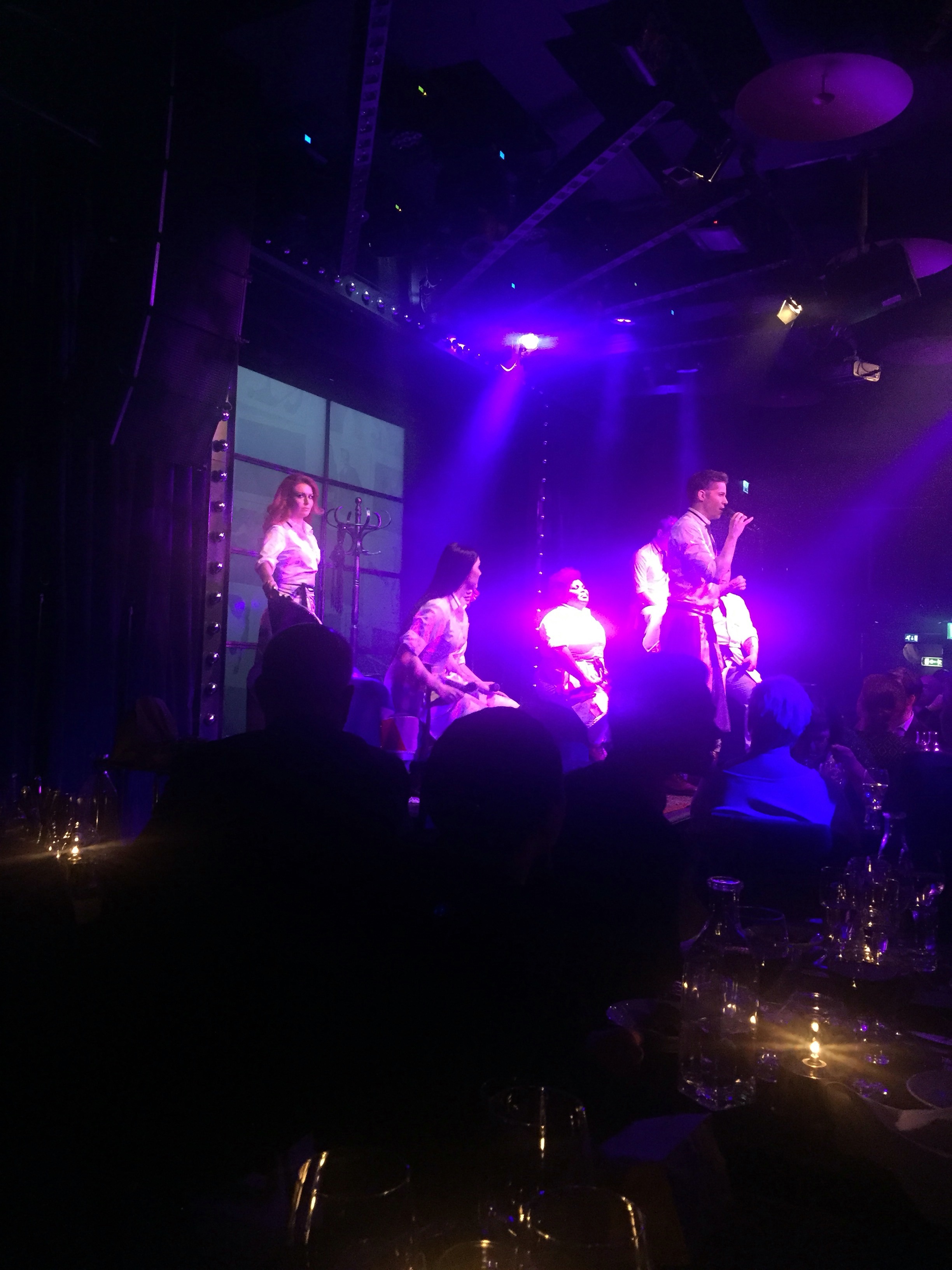 Jag funderar lite på om jag uppfattade det som att föreställningen stegrades. Tror inte det. Stämningen tycker inte jag byggdes upp på samma sätt som matens smaker. Det är så klart svårt att stegra en show som är sönderhackad, men jag tror ändå att det skulle gå att skruva till det lite till. Scenkläderna tycker jag att de gärna får ses över. Lite regi hade inte skadat. Det blev lite för många ”fasta” situationer. Det kändes som att gänget var osäkert och därför inte bjöd på sig själv på rätta sättet. Jag fick en fem-sex tankar på hur det kunde göras bättre.