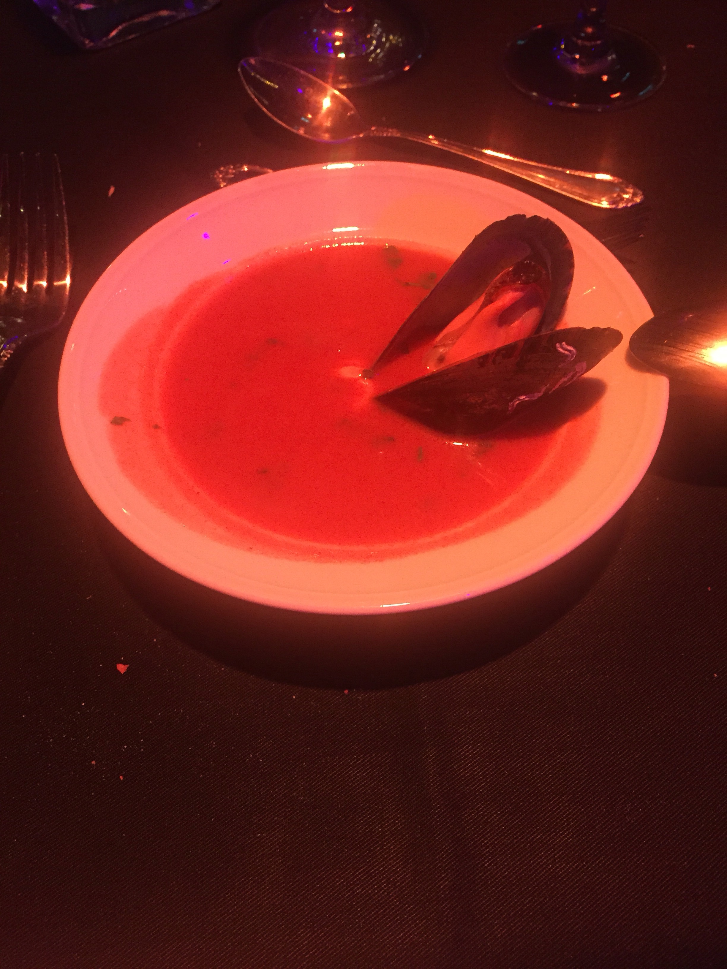Första rätten var en bouillabaisse. Till denna drack jag bubblet. Ett bubbel som också funkade till andra rätten, en råbiff. En god lite rätt. Kan ha varit mina smaklökar som skojade till det, men jag tyckte det fanns en angenäm smak av fisk.