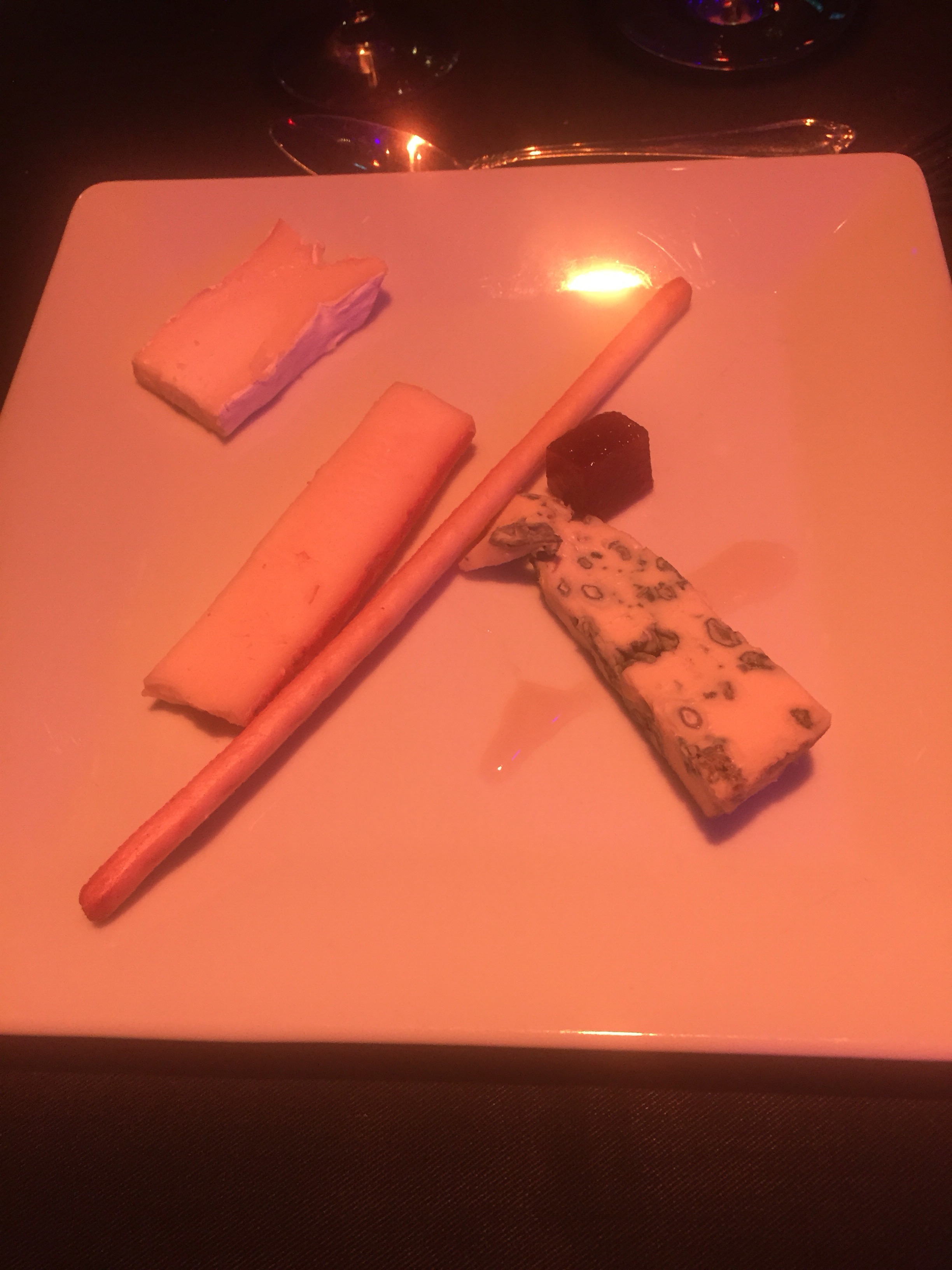 Efter huvudrätterna kommer så klart efterrätten. Det var en traditionell ostbrickan med tre sorters ost. Ost är alltid gott, så inga klagomål på det. Dessertvin till detta.
