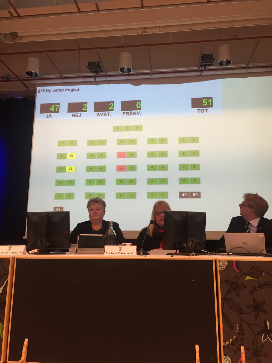 Trelleborg Nästa → Tydligt ställningstagande för Trelleborgs kommuns utveckling. 47 för utveckling, två mot, två vågar inte utveckla.