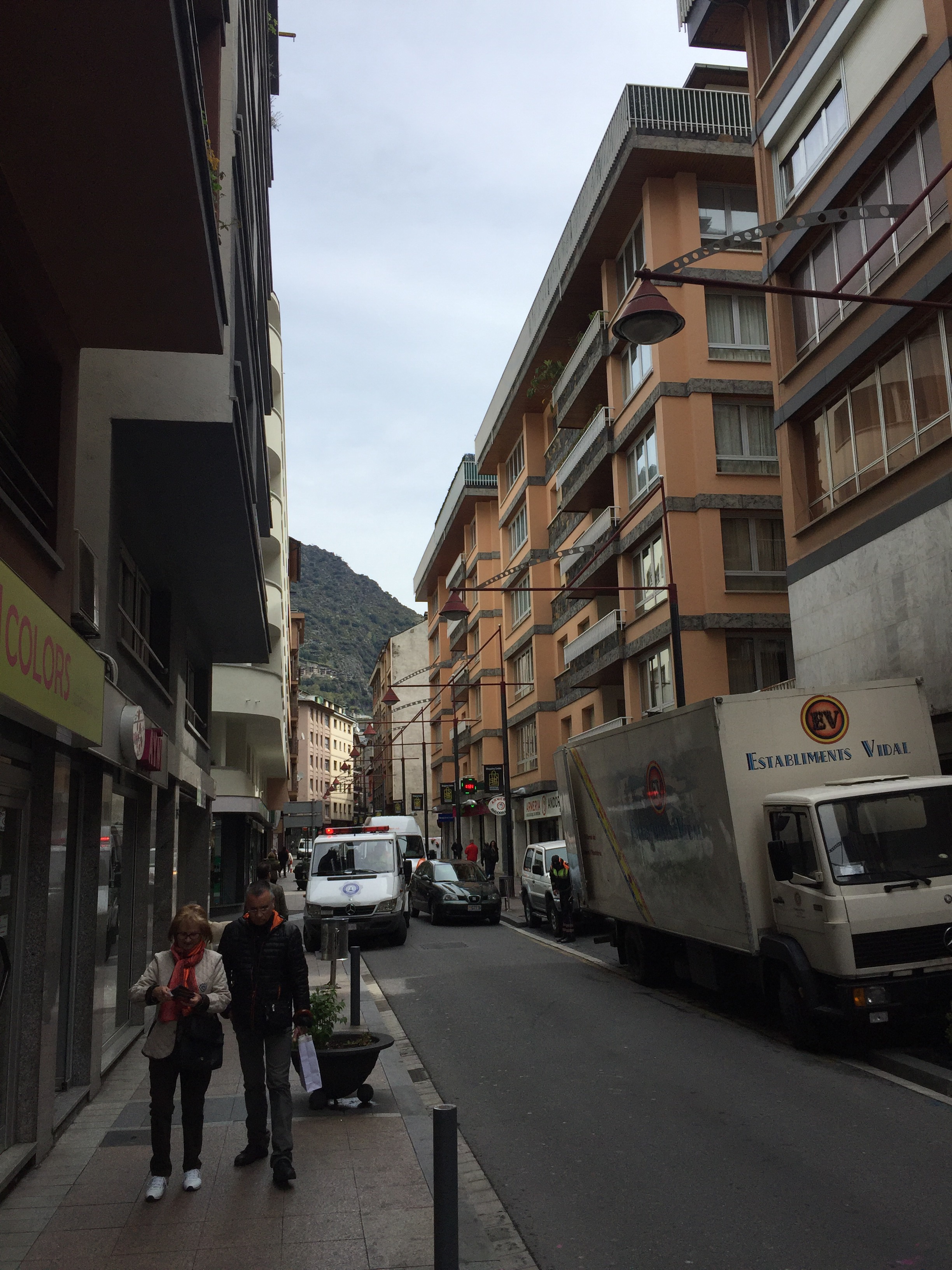 Mitt första intryck av Andorra la Vella var förvåning. Jag kan inte riktigt säga vad jag förväntat mig, men det var inte vad jag möttes av. Tror nog att jag hade en förväntan av en gammal bergsby med gamla lägre hus. Det jag möts av är en modern stad med högre hus. Jag kom fram strax efter kl 11 och skulle åter kl 18.