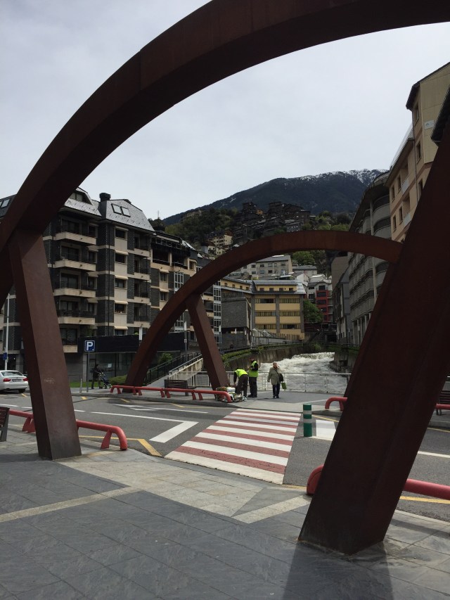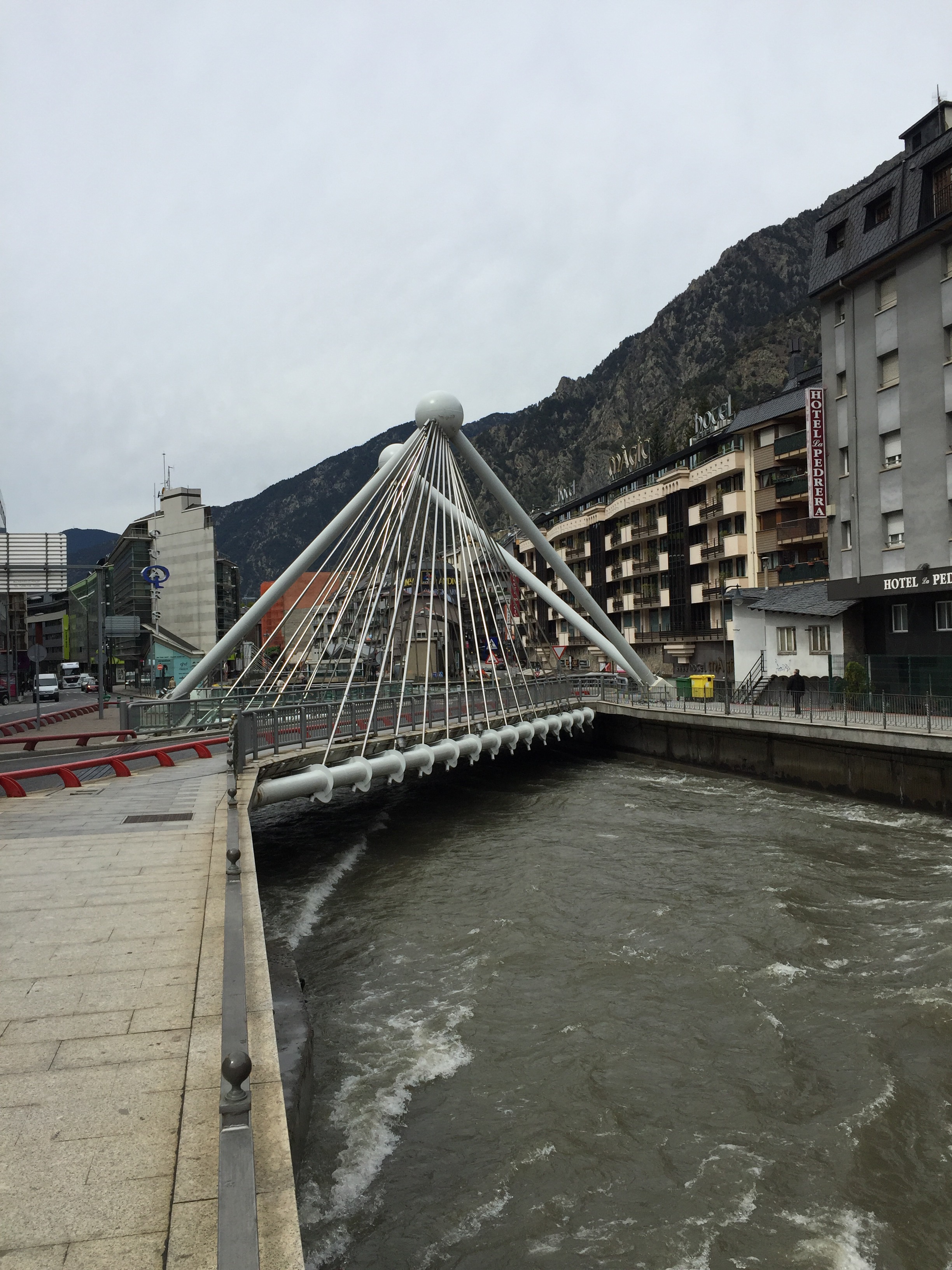 Genom Andorra la Vella rinner en flod, Valiera. Gissar att det är de senaste dagarnas regn som gjort att den nu forsade fram. Det var mäktigt att se. Till följd av floden går genom staden så finns det många broar. Riktigt snygga broar dessutom. Sen fanns så klart helt vanliga övergångar också, men de flesta hade stil och varierad stil dessutom.