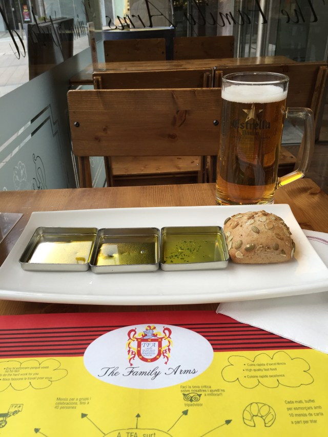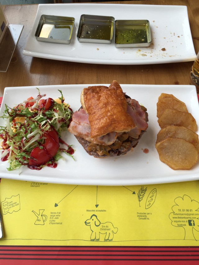 En sak som måste ses och som dessutom är svår att missa är Salvador Dalis staty. Tavlan med klockan som rinner nerför en trädstam står som staty. Tavlan är läcker och denna staty är det också. Staden var inte så ”puttinuttig” som jag först tänkt. Det var många moderna och höga hus, alltså fem-sex våningar. Det förvånade mig. Det fanns också en brokighet i stadens arkitektur som inte gjorde mig något. Kul att se olika stilar blandas på detta sätt. Något som bidrog ytterligare till charmen var gatustrukturen. Inga raka gator utan de liksom fick slingra sig fram. Antar att det underliggande materialet, berget, bidragit till detta. En rak gata fanns dock det var gågatan. Kan mycket väl tänka mig att när det är mer högsäsong är det gott om folk som befolkar gatorna och besöker alla butiker. Det stora utbud av butiker förvånade också. Rätt övertygad om att målgruppen inte är den inhemska befolkningen. Landet lever på turism och här i stan finns ett bra utbud av handel, matställen och restauranger. Ett modernt rådhus låg i utkanten av de gamla delarna av stan. Granne med det en gammal kyrka, som gick att titta in i. Smala gator och framförallt smala trottoarer kännetecknade denna del av staden. En av stadens besöksmål var Casa de Vall. Detta hus är den gamla parlamentsbyggnaden i Andorra med rötter från 1580. På 1700-talet köptes huset in och blev till parlamentet hemvist. Intill Casa de la Vall ligger dagen parlamentsbyggnad. Innan det var dags att åka tillbaka till Barcelona bestämde jag mig för att äta en bit mat. En hamburgare av kött från Andorra och bacon från Iberiska halvön. Så vidare traditonell var inte maträtten. Köttet var nog snarare en hel köttbit än gjord på färs. Potatisen skivad och salladen hade en söt dressing över sig. Jag skulle inte bli förvånad om det var hallon i den. Något hamburgarbröd var det inte tal om utan det var smördeg. Men, det var väldigt gott.