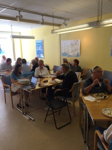 - Många trevliga samtal sker över en liten bit mat på (M)ötesplatsen