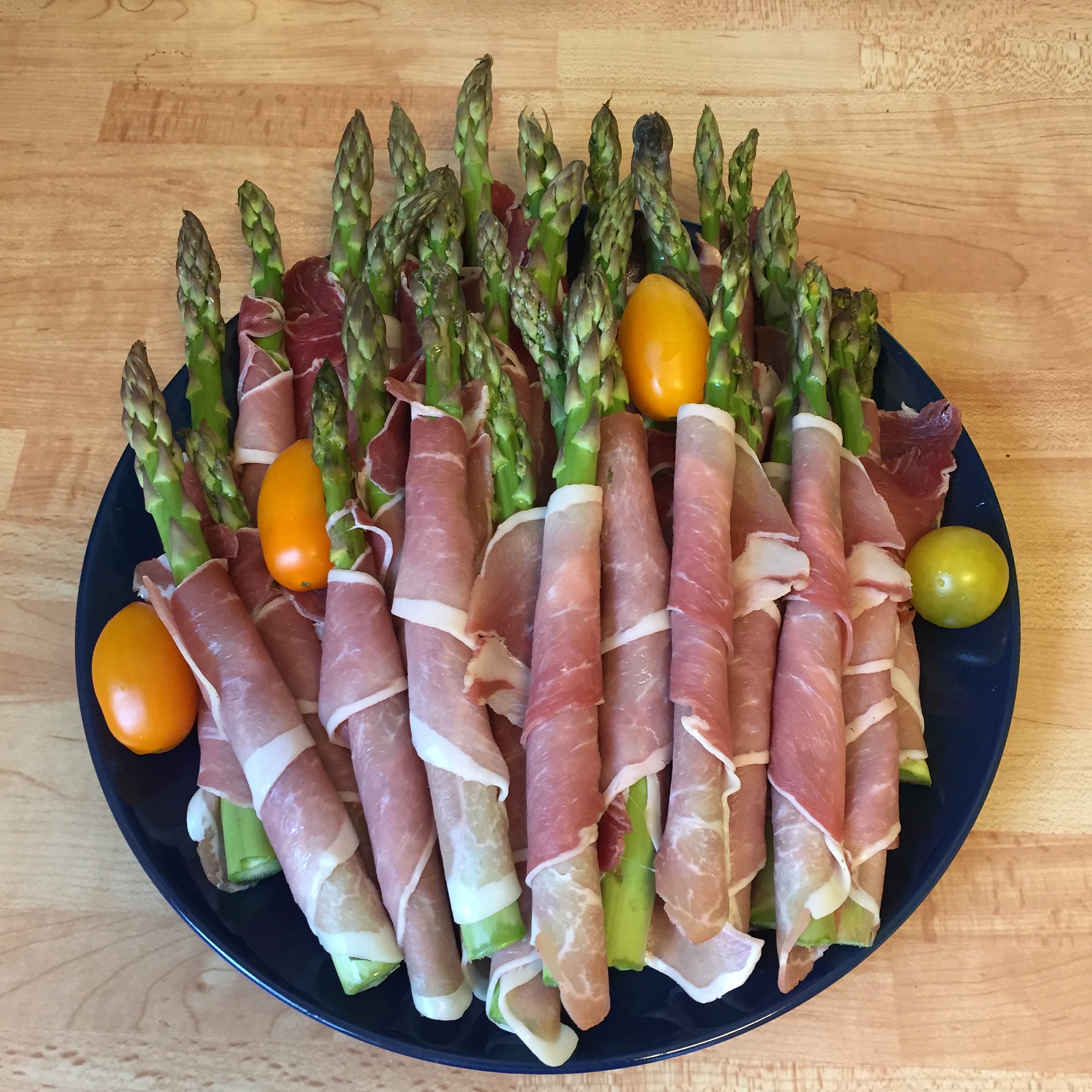 Grön sparris rullad i lufttorkad skinka