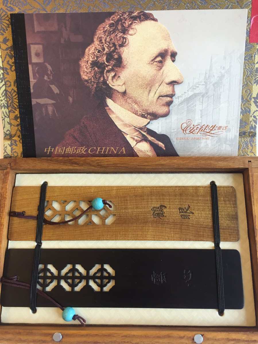 Besök från Kina ← Föregående Gåva från Ningbo. Två bokmärke i trä och ett häfte med minnesfrimärke för att hylla H C Andersen