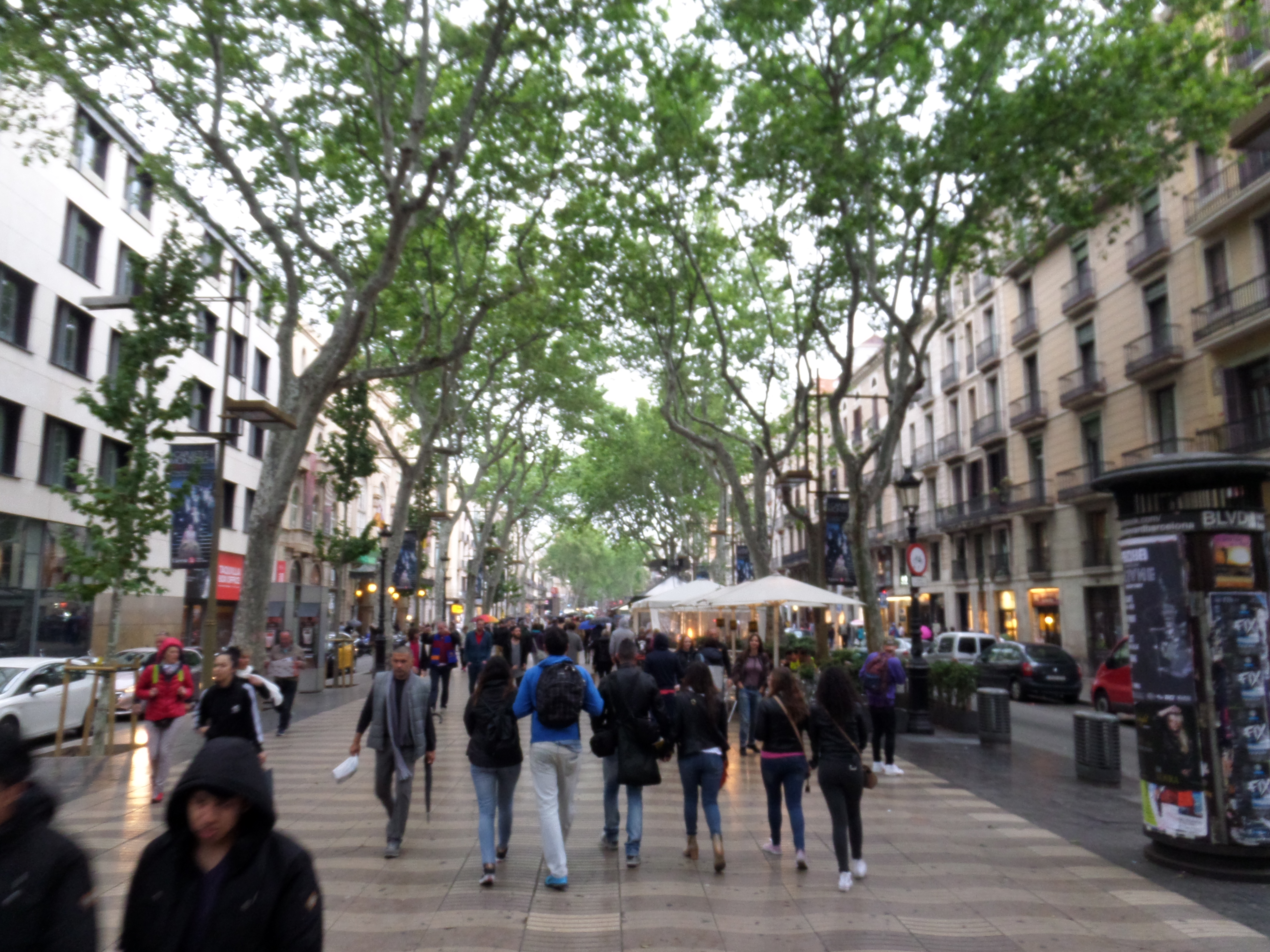 Många är ute och spatserar på La Rambla