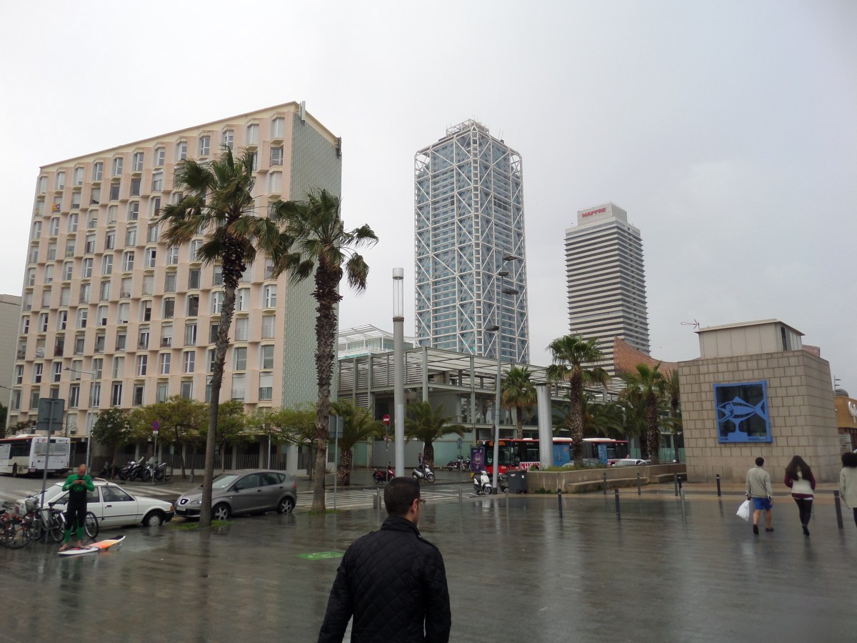 Spännande höga hus i Barceloneta