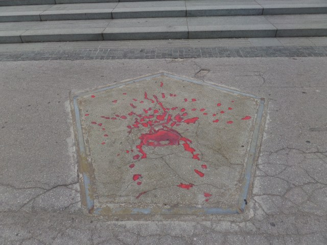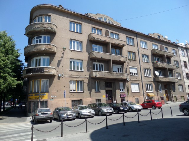 Alla dessa kulhål. Alla dessa fasader fortfarande märkta av kulhål. Granatsplitter. Märken i asfalten. Minnesplaketter.