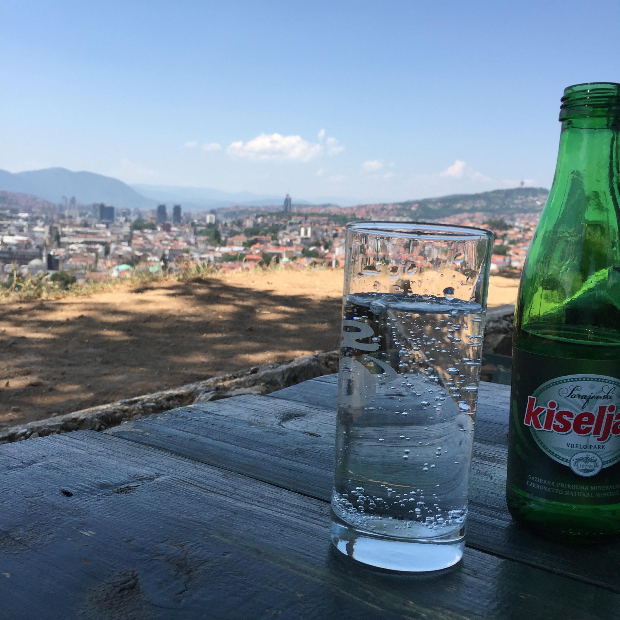Ett glas kallt gott vatten och en fantastisk utsikt