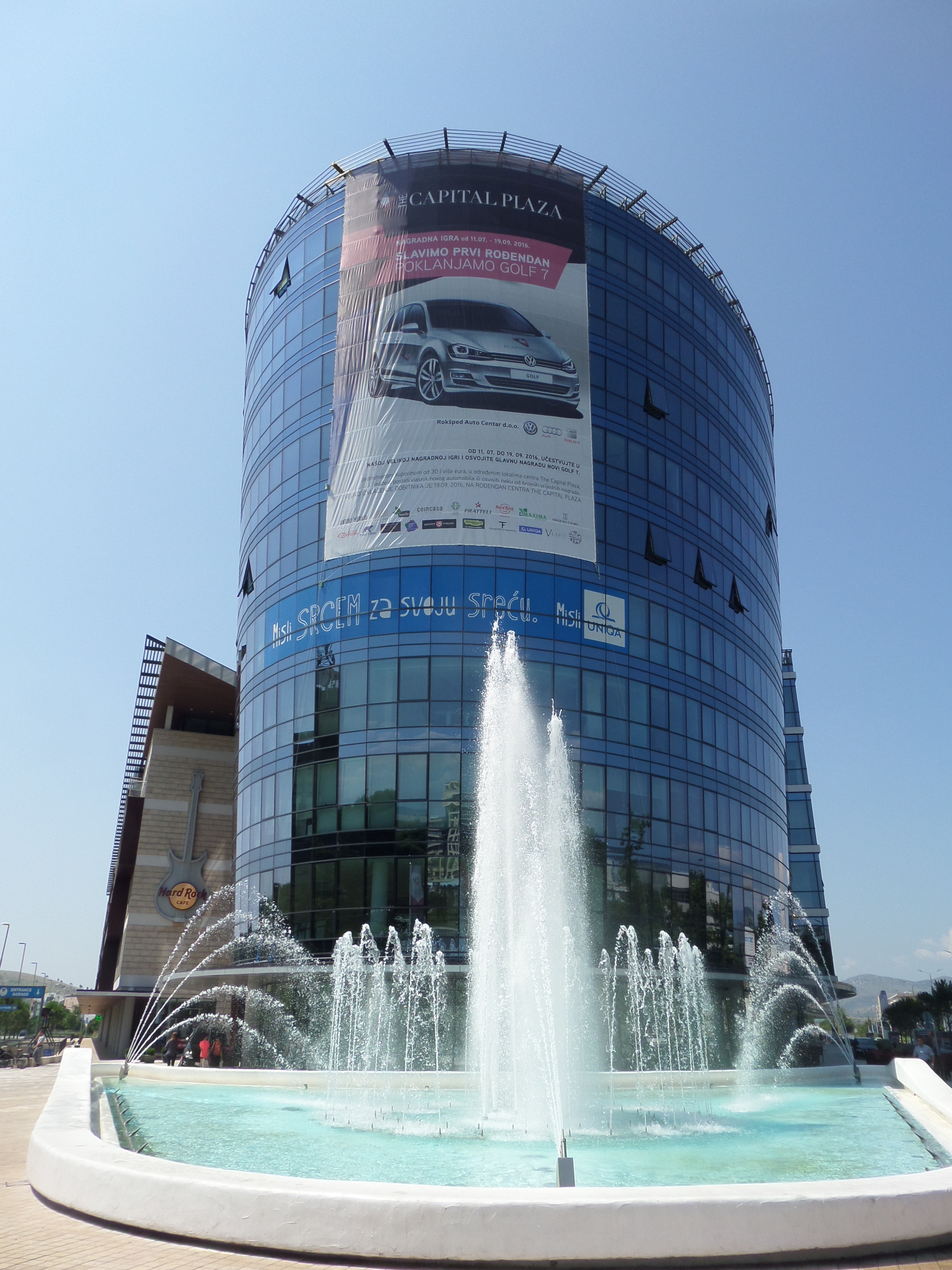 En rejäl fontän framför Atlas Capital Centar